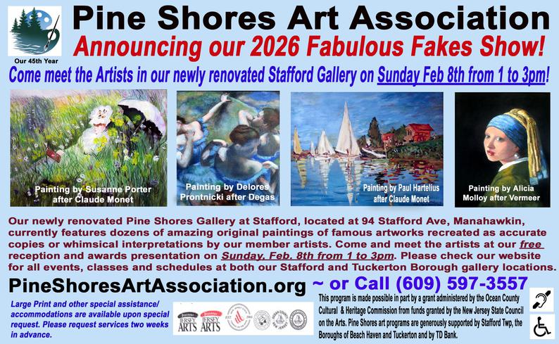 This program is made possible in part by a grant administered by the Ocean County Cultural & Heritage Commission from funds granted by the New Jersey State Council of the Arts.