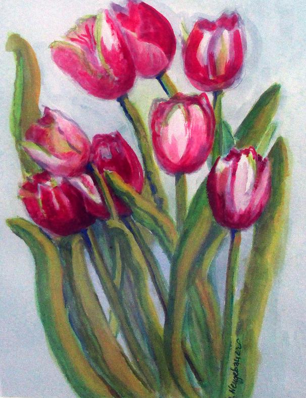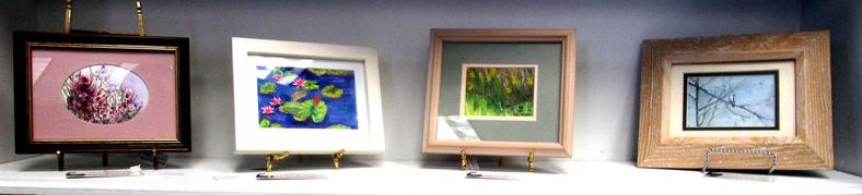 Above, left-to-right: watercolor paintings by Carol Neugebauer