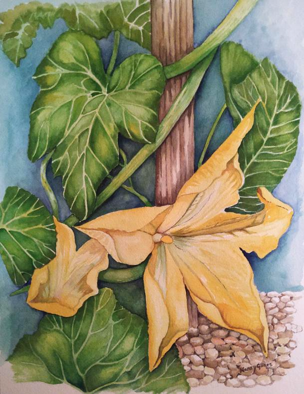 'Pumpkin Flower' watercolor by Nancy Glines