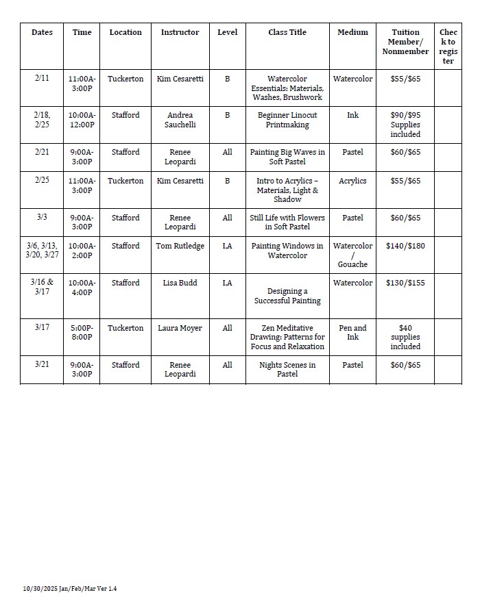 CLASSES - Stafford & Tuckerton Galleries