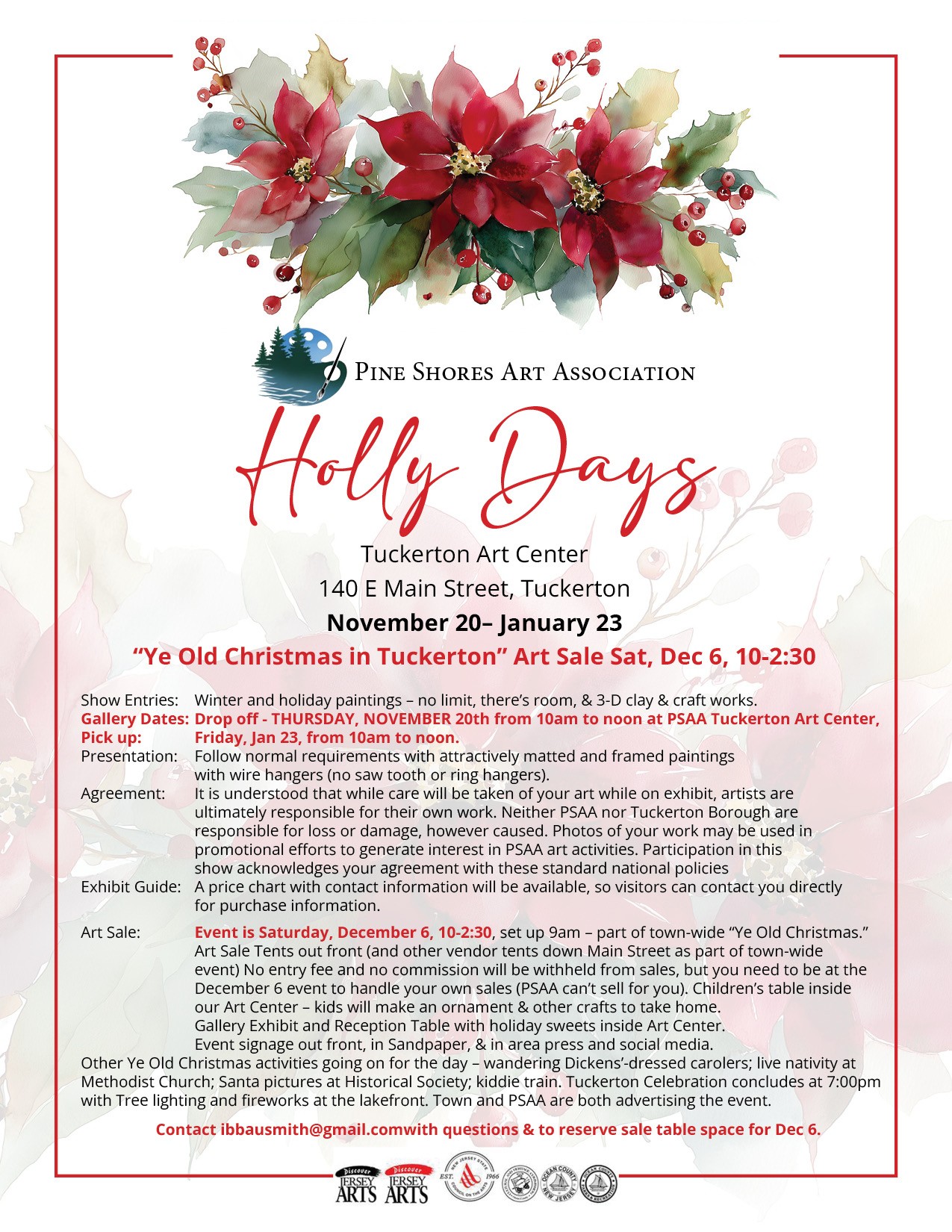 2023 HOLLY Days - Our ninth annual holiday-themed art show was in-studio this year in the Tuckerton gallery. Click the title to see the wonderful online entries of holiday and winter scenes. There was no fee, no judging.