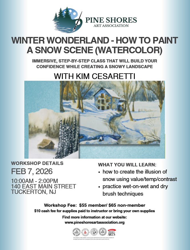 The Pine Shores Art Association's Stafford and Tuckerton buildings are barrier-free facilities with designated accessible parking areas, ramps with curb cut-outs, and complete wheelchair access. Both locations also feature wheelchair-accessible restrooms.