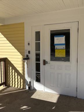 October 17th update: The windows have all been replaced and the lower half of the building has new cedar clapboard siding with a fresh yellow coat of paint and freshly painted white trim.