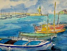 Above: 'Cassis Lighthouse' mixed media artwork by Suzi Hoffman.